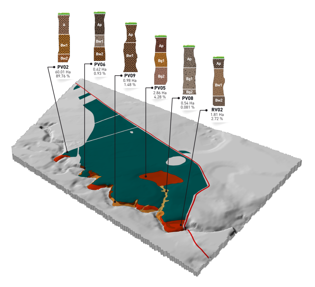 Suelos profundos de paisajes de piedemonte (PV) y de planicie (RV), con espesor entre 100 cm y 150 cm, compuestos por texturas medias a gruesas y en general fertilidad naturales baja debido a la acidez del suelo.