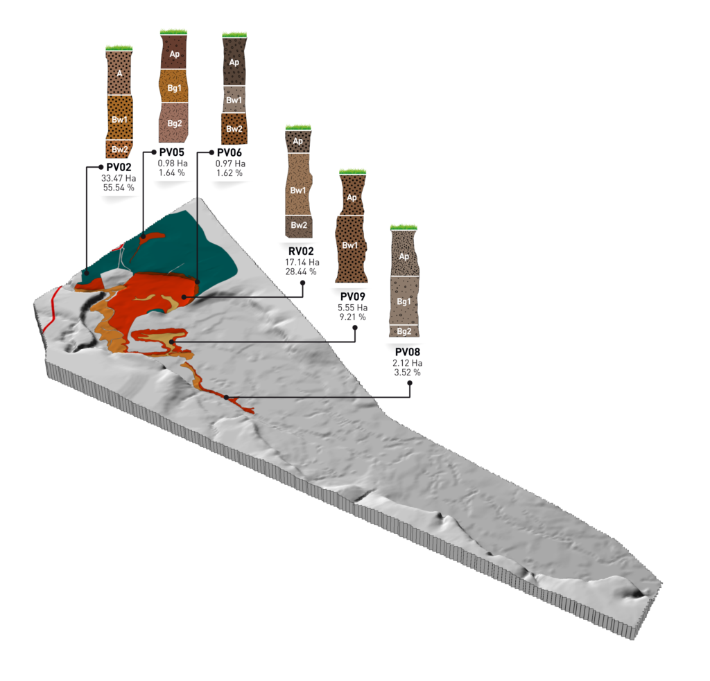 Suelos profundos de paisajes de piedemonte (PV) y de planicie (RV), con espesor entre 100 cm y 150 cm, compuestos por texturas medias a gruesas y en general fertilidad naturales baja debido a la acidez del suelo.